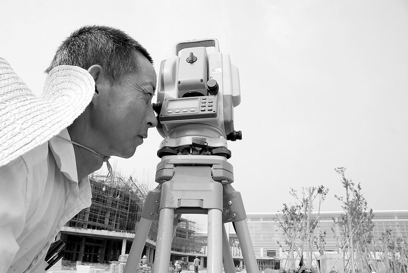 6月8日上午,施工人員在使用水平儀精準定位廣場花崗巖地面鋪裝。據(jù)了解,目前蚌埠高鐵站前廣場及配套設施工程全面進入沖刺階段,施工單位在加班加點搶工期施工。